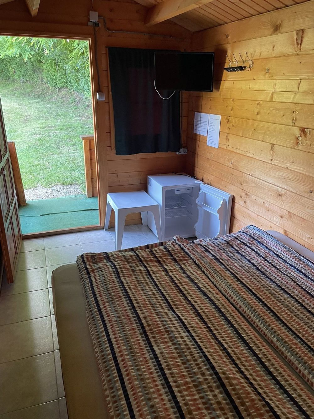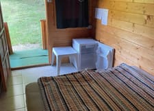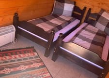 - o căsuța cu doua paturi pentru doua persoane , un calorifer electric pentru sezonul rece ,